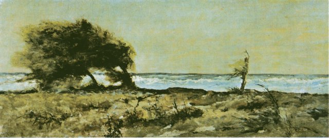 Fattori, La libecciata, 1880, Palazzo Pitti. (Foto da Wikipedia, per i crediti agli autori si veda il link) La Tamerice ritratta è diventata famosa, ad Antignano (Livorno) esiste una Spiaggia delle Tamerici che potrete visitare con l’aiuto dell’Omino Street View.