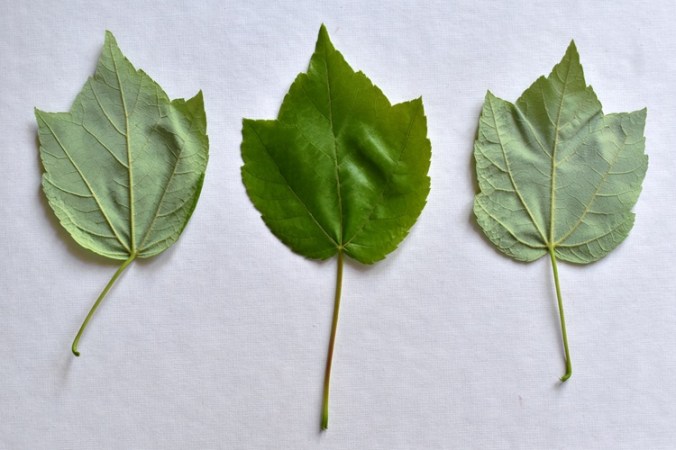 Nella foto collage le scale sono alquanto diverse per le tre foglie, in realtà la foto del ginnala è la più grande di tutte, mentre le altre due hanno dimensioni equivalenti.
