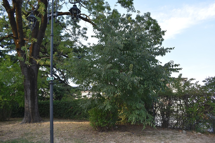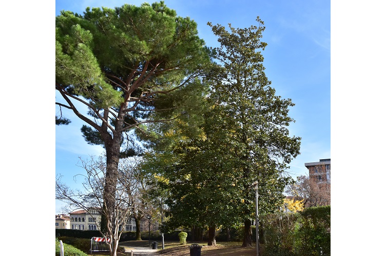C’eravamo lasciati con questa foto che mostra l’ingresso all’ultimo livello del Giardino. Il primo albero che attrae l’attenzione è un alto e robusto Pinus pinea.Da Viale CodalungaL’albero è un po’ l’emblema di questa parte di Giardino, lo si vede da ogni angolazione. Nella foto alla sua destra tre giovani alberi: due magnolie e un ginco. Le due magnolie dall’entrata, sullo sfondo i palazzi di Viale Codalunga.Oltre le magnolie e il ginco uno splendido olmo (Ulmus minor)Anzi, tre appiccicati.E dopo gli olmi un Frassino minore (Fraxinus angustifolia)……in verità due frassini,……il secondo alquanto discosto così da lasciare visibile il serbatoio da Viale Codalunga. La foto è presa in Aprile.Il secondo frassino è scortato da un melograno e… …da un bagolaro (Celtis australis) cresciuto a mo’ di arbusto.Oltre il secondo frassino, sempre in senso antiorario, un gruppetto di magnolie. E poi ancora un angustifolia, spoglio nella foto (Novembre 2019).