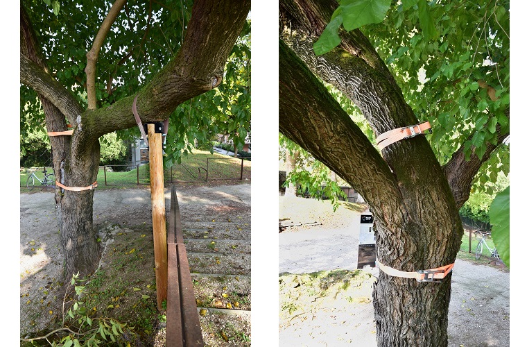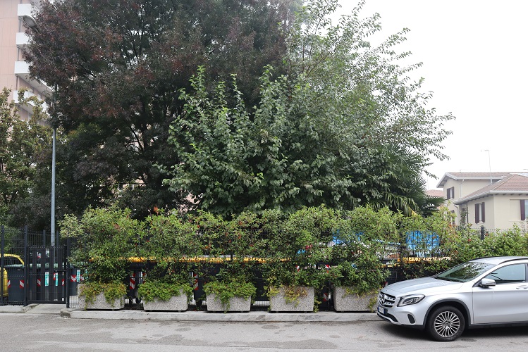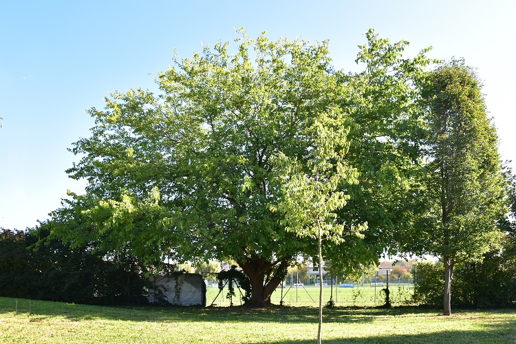 Riprendiamo dal Giardino dei Gelsi in Via Monte Cengio, qui e nelle zone limitrofe abitano numerosi alba che si possono osservare con calma e soprattutto toccare.Sì, perché è quasi esclusivamente il tatto che aiuta a distinguerlo da Morus nigra: la foglia dell’alba è liscia e glabra, sopra e sotto. Se la sentite scabra nella pagina superiore o felpata in quella inferiore, drizzate le antenne poiché potrebbe trattarsi di un nigra oppure, più semplicemente, di un alba che cerca di camuffarsi da nigra.Eravamo rimasti nei paraggi di Via Monte Cengio: ecco un bell’esemplare in Via Brigata Padova. Prima che mettessero proprio lì davanti l’area condominiale per la raccolta differenziata. Ottobre 2021, un po’ ridimensionato. Il colore autunnale dell’albero in secondo piano svela un Fraxinus angustifolia.Una vecchia conoscenza al Giardino Martiri della Resistenza. Ma chi può ridurre una povera pianta così? Un anno e mezzo dopo. Non ci si faccia troppe illusioni, l’asporto di quelle grosse branche ha condannato questa pianta a morte prematura.