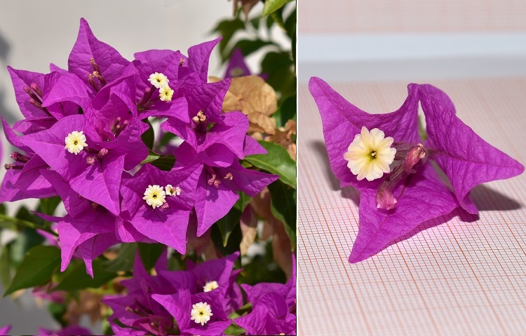 Simmetria pentagonale con petali larghi e dalle unghie sottili, numerosi stami e alto pistillo al centro. L’arbusto fiorisce abbondantemente appena dopo l’amolo.