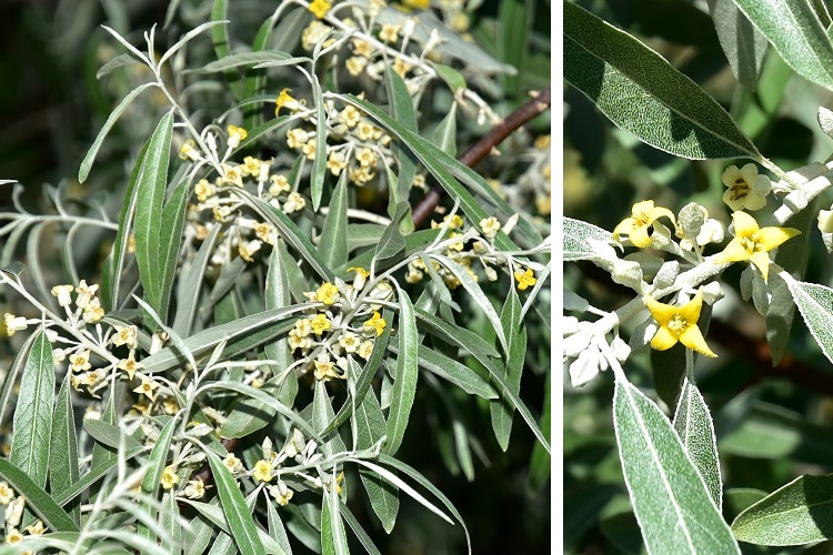 Fiori singoli o in gruppi di due o tre all’ascella delle foglie. Piccoli, gialli internamente e argentati all’esterno. L’albero da lontano appare lievemente spruzzato di giallo.