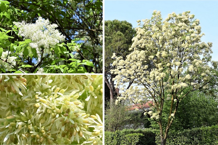 Questa serie di post è stata costruita per aiutarvi a identificare gli alberi dalla forma delle infiorescenze. Le tipologie di infiorescenze sono ripartite in sei gruppi/post: fiori solitari (appaiono in cima ai rametti o alle ascelle delle foglie); fiori in vistosi candelabri (grandi infiorescenze rivolte verso l’alto); fiori in fascetti o mazzolini (strutture più o meno ampie, quasi bouquet); fiori in amenti (le piante appaiono punteggiate da sottili segmenti verticali); fiori in grappoli o capolini o sparsi sui rametti; fiori in squame. La scelta operata privilegia l’osservazione da lontano, quando si è irresistibilmente attratti da nuovi colori e nuove forme che appaiono fra i rami, spogli o meno. E proprio ai colori dei fiori è dedicata un’altra serie in qualche modo complementare a questa prima (e che pare attiri maggiormente chi viaggia nel blog). È coperta una vasta gamma di colori, a dire il vero tanto ampia che mi ha stupito: fiori bianchi o crema; fiori non completamente bianchi; fiori rossi o rosa, fiori fucsia o violetti; fiori gialli, fiori verdi.