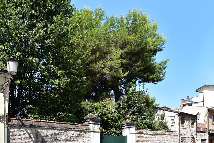 L’albero in città è rarissimo ma per trovarlo in abbondanza, basta fare una gita al Lido di Venezia, dove lo potrete osservare in tutta comodità. Nella Foto il Canale delle Scoasse e sullo sfondo l’Isola di Poveglia.Da diversa angolazione. Nelle foto si vede bene la silhouette dei rametti terminali,… … (ne abbiamo già parlato, ricordate?) sembrano certi piumini per la polvere, un carattere che aiuta l’identificazione.Aghi a fascetti di due, stretti, sottili, elastici; colore verde chiaro, lunghezza fra 10 e 15 centimetri.Coni: appiattite la parte esterna della squama e la losanga marrone al centro (rispettivamente: apofisi e umbone); lungo peduncolo, cosa piuttosto rara fra i pini.Il ‘frutto’ matura in due anni. Nella foto una pigna poco prima dell’apertura delle squame e l’abbandono dei semi.Evoluzione nel tempo delle pigne: ogni anno un nodo. In cima ai rametti si intravvedono i minuscoli frutti appena formati.Eccone uno da vicino, già evidente il lungo peduncolo.La specie è molto prolifica e i coni rimangono a lungo sulla pianta prima di cadere.Le infiorescenze maschili dei pini son tutte piuttosto simili. Foto in aprile. Altro carattere distintivo è il pallore dei nuovi rametti. Conservano il colore bianco grigiastro per almeno un paio di anni.La corteccia rimane grigia e non perde placche, diversamente da molti pini. Nella foto un esemplare dalle notevoli dimensioni.Spesso tende a crescere inclinato, assecondando i venti prevalenti.A volte esagera un po’…Via Briosco. Un rarissimo, per Padova,halepensis abita un giardino privato protetto da un altissimo muro di cinta.Siamo all’altezza dell’ex Teatro Antoniano.Un secondo individuo abita in un giardino privato lungo il Canale Scaricatore verso Ponte Terranegra.Di recente ne ho scoperto un altro (sic!) in Orto presso la fontana di Salomone (Porta Sud); molto difficile da fotografare, specie a mezzogiorno…Lungo il sentiero che da Maiori conduce ad Erchie (Costiera amalfitana) fra mirti e ginestre.Filare ornamentale di d’Aleppo presso Sermoneta (Latina)Il Castello Caetani, in fondo a ridosso delle case Arundo donax.Pennacchi di d’Aleppo. Naturalmente è solo un pretesto per godere della skyline della città: a destra del Palazzo dei Dogi, il Campanile di San Giorgio e l’imponente mole di San Giovanni e Paolo; sulla sinistra una lunga teoria di campanili aperta da San Marco e chiusa dalla cupola della Salute, segue il Campanile di Santo Stefano.