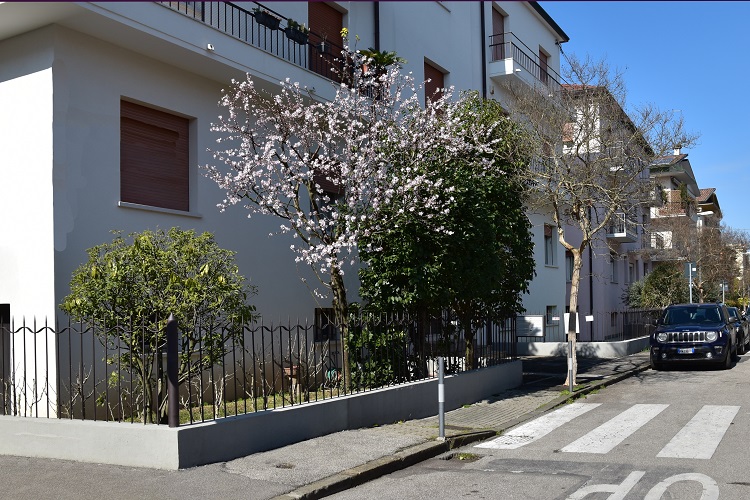 Piccolo albero dalla fioritura precoce e dal frutto nobile, caratteri che assieme ai colori tenui e all’andamento contorto lo rendono da sempre materia per poeti. Non si nota facilmente girando per la città, se non quando fiorisce, nunzio di primavera, coi suoi fiori bianchi sparsi a manciate sui rametti. Bello e longevo lo si trova talvolta in qualche giardino privato rarissimamente in quelli pubblici. Peccato.