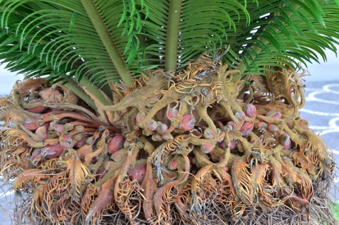 Cycas revoluta è pianta ricca di suggestioni, somiglia alle felci per l’abitudine delle foglie a nascere arrotolate mentre nel portamento richiama le palme. Ma non è imparentata né con le prime, ché sono molto più antiche, né con le seconde, molto più recenti.