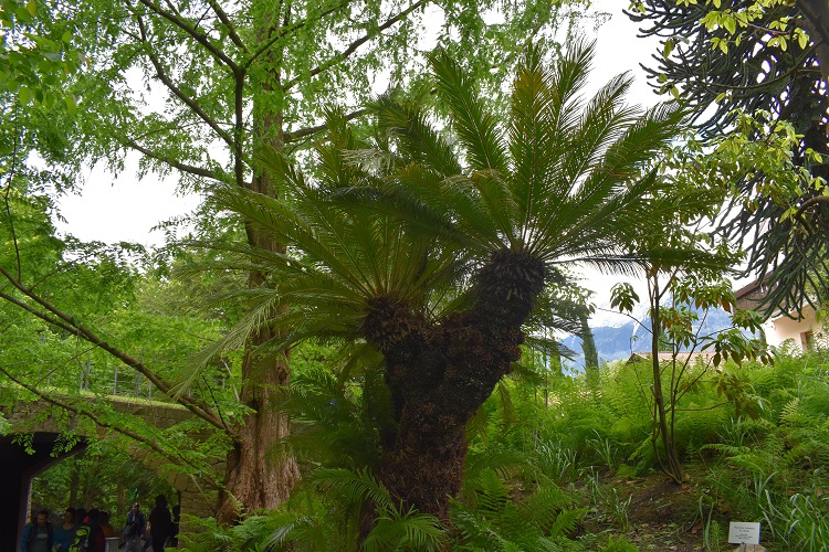 A prima vista somiglia alle palme, ma queste sono angio-sperme (vaso-seme) cioè piante con ovario e dentro l’uovo, mentre i suoi ovuli sono ‘nudi’, protetti appena da una morbida fogliolina. (Nella foto vetusto esemplare ai Giardini dell’Alcazar a Siviglia, sullo sfondo Washingtonia robusta e Trachyacrpus fortunei)Giardini della Reggia di Caserta. Cycas, palme di Goethe, palme cinesi.