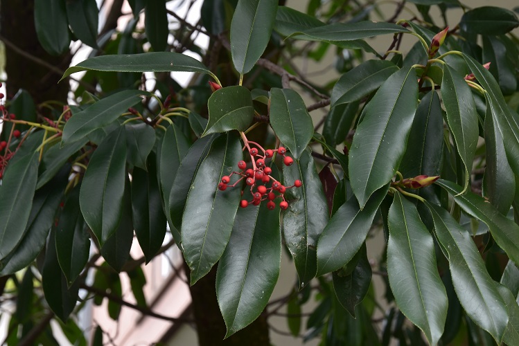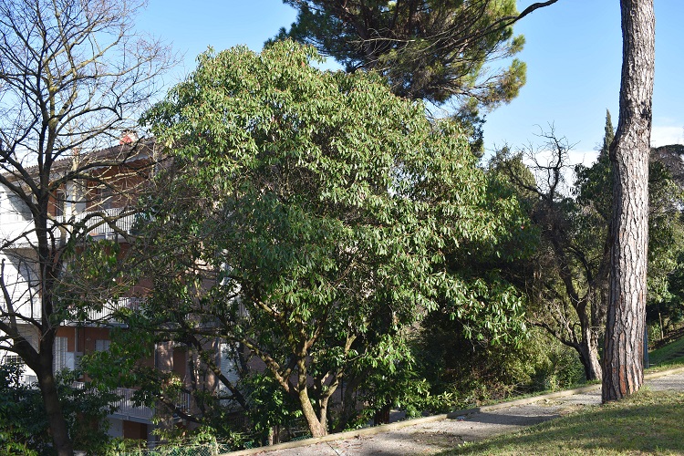 I frutti maturano lentamente, dapprima verdi (settembre)……infine diventano scarlatti. Foto in gennaio.Corteccia sottile, inizialmente grigia si fessura in placche irregolari, che con l’età cadono lasciando comparire macchie rossastre.Alcuni esemplari vivono nelle aiuole dei viali centrali al Parco Iris. Le foglie e il portamento della fotinia richiamano il lauroceraso, col quale a volte si può confondere.Kew Garden, Londra. Un esemplare lasciato crescere liberamente, senza l’umiliazione del taglio dei rami bassi.Pratica ancora più evidente in questo esemplare del Jardin des Plantes. Orto Botanico di Cordoba.