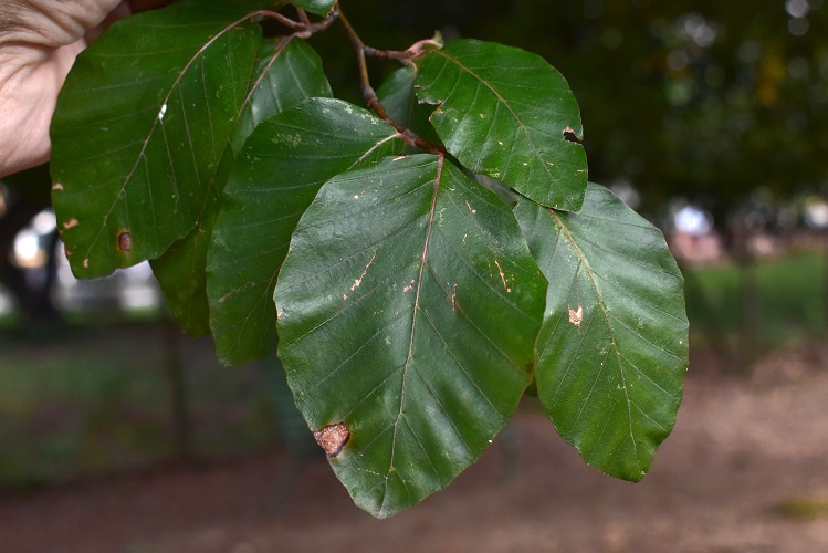 Un gruppo di giovinetti cresce nel Giardino Napoli (Via Siracusa); ripresi dal primo piano di Fornace Carotta.Veduta aerea sul Bosco del Gariglione, Altipiano della Sila (CS). Gli esemplari isolati e quelli che crescono sul limitare dei boschi conservano i rami bassi, mentre quelli all’interno li perdono velocemente poiché la corsa è in altezza. Sentiero nella Foresta del Monte Cimino. Così si presenta una faggeta: pilastri snelli e dritti a formare in alto archi variamente acuti, come in una cattedrale gotica, e niente sottobosco. Bosco Vandelli nell’ampezzanoFoglie alterne in formazione compatta quasi un mantello, ombra fitta assicurata.Forma tondeggiante, vertice ampio, quasi ottuso, la base imita il vertice. Nervature secondarie dritte, rade e parallele, margine ondulato. Colore verde intenso e brillante, picciolo corto e rossastro.Pagina inferiore più chiara, peluria aranciata alle ascelle delle nervature.Bordi pelosetti al risveglio vegetativoIn autunno variamente colorateUna rigida mattina invernaleGemma in febbraio, numerose perule robuste e appuntite; simili a quelle del carpino bianco.Aprile, loro si aprono scompostamente e restano per qualche tempo attaccate a foglie e fiori.Fioritura effimera nella seconda metà di aprile. Nella foto infiorescenze maschili, amenti cortissimi (quasi capolini) pendenti da un peduncolo pronunciato.I singoli fioretti hanno una mezza dozzina di stami e base (perianzio) piumettataDa una illustrazione botanica: infiorescenza maschile, singolo fiore maschile e sua sezione longitudinaleL’infiorescenza femminile schiva quanto complessa: un involucro lanuginoso formato da brattee, che poi diventerà una sorta di capsula (in realtà una cupola del tipo della ghianda), raccoglie uno o più fiori che lasciano emergere ricciuti stigmi gialloverdognoli, difficili da osservare. Un disegno a chiarimento del tutto. In omaggio ai tanti illustratori e alla loro opera meritoria.L’infruttescenza comincia a prender forma già in giugno: una cupola munita di morbidi aghi che avvolge interamente i frutti all’interno.In settembre matura la faggiola. L’involucro nel frattempo lignifica indurendo, ma non troppo, i suoi aghetti. Quattro valve per due o tre noci dalla sezione triangolare.In ottobre e novembre l’albero veste dal giallo al rosso vivo. Nella foto un esemplare ai Giardini Boris Giuliano (Via Morgagni). Giardino Città d’Italia, Via AnconaSplendido esemplare presso il muro perimetrale sud dei Giardini dell’Arena.Ancora il Giardino di Via Sarpi, verso la Palestra Comunale. Questa zona, dopo i lavori di manutenzione, è ora inaccessibile poiché incorporata nel giardino di una vicina scuola elementare (De Amicis). Entrata dell’Aula Morgagni (Ospedale Civile), Faggio sulla destra, a sinistra uno degli olmi di nostra conoscenzaCima del Monte Grande lungo il Sentiero 14. Il faggio è una presenza rara sui Colli, ma di recente ne ho trovato un altro sul sentiero del Venda (segnavia 9).Inverclyde (Scozia, foce del Clyde), un esemplare dal tronco possente ma non molto alto: una questione di latitudine.Bel sylvestris in Orto, la macchia rosata è un tricolor del quale parleremo presto.