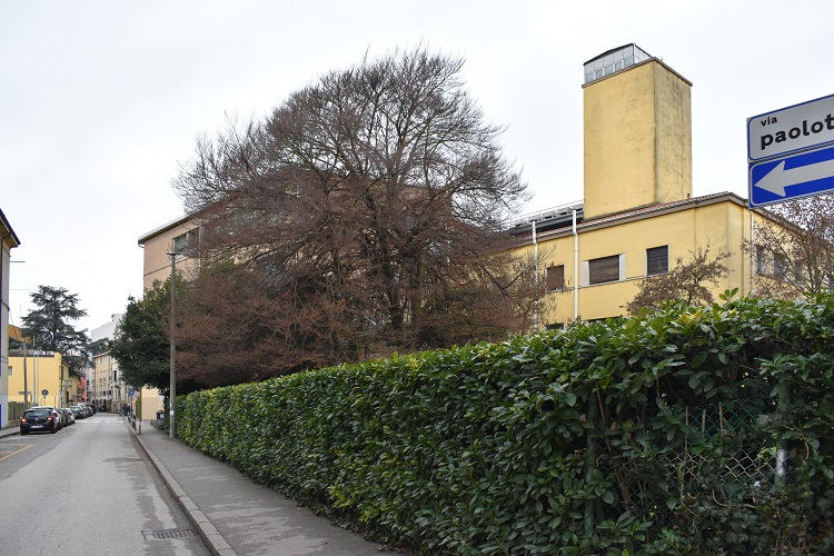 Un esemplare veramente notevole, incute soggezione il solo avvicinarsi. Vive oltre una recinzione nel giardino della Scuola Elementare Stefanini, che occupa la vecchia dimora dei vivaisti. Altri due stanno oltre il vialetto, verso Via Piovese – il tronco in mezzo è di un vetusto Ligustrum lucidum, di questa specie ne vivono gran numero nel Giardino. Non è agevole fotografarli, molti sono gli alberi grandi che li attorniano.Ponte Pontecorvo, in un giardino privato che dà sul Canale Santa ChiaraEsemplare bello in tutte le stagioniUn bellissimo asplenifolia (in realtà due vicinissimi) vive nel giardino di Fisica, quasi certamente risale alla costruzione del complesso inaugurato da Bruno Rossi nel 1937. La fisica padovana era all’avanguardia nello studio dei raggi cosmici – una torre adatta allo scopo si vede nella foto – ma poco ne poté godere il Rossi. Vittima delle leggi razziste del ’38 (ma perché continuare a chiamarle razziali?) pensò bene di lasciare l’Italia. Oggi riposa nel Cimitero Monumentale di Firenze.Il Nostro in dicembreStudenti di Fisica si godono la frescura in un caldo mattino ottobrinoSeguire gli alberi della città significa spesso andare incontro a grandi e amare sorprese. Questo lo spettacolo che il povero albero offriva in una mattina del Dicembre 2021. Mi chiedo come ci si possa permettere di distruggere una tale bellezza regalataci dalla natura. Non è la prima volta che si incontrano mutilazione del genere nei giardini degli istituti universitari, eppure sono gestiti da gente almeno laureata…