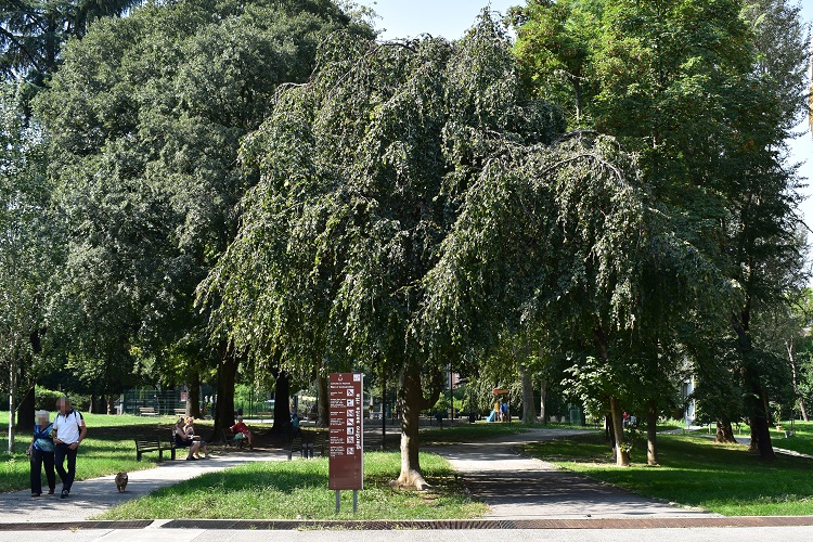 Albero rarissimo in città, unico esemplare che conosca al Giardino Storico Treves. I giardinieri sembrano preferirgli il pioppo cipressino e la farnia fastigiata molto simili da lontano.