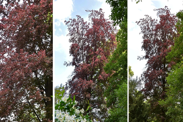 La sua caratteristica è di avere il bordo della lamina color di rosa. A seconda del periodo e dell’individuo il rosa si accende o si scolora e il contorno si espande o si contrae. Nella foto l’esemplare dell’Orto alla fine di maggio. Qui in aprileSempre lui in ottobreNon è stato facile riprenderlo nella sua interezza immerso com’è fra i grandi esemplari dell’arboreto, qui è visto dalle aiuole che danno sulle vasche e le nuove serre.Alcuni sembra vogliano esagerare, nella foto un esemplare in Via Fusinato ai primi di maggioAbita un giardino privatoIn ottobre. Ad avere un albero così in giardino non ci si annoia certo.Giardini dell’Arena, l’aiuola che dà sull’abside della Cappella degli Scrovegni. AprileGiugno. Da qualche tempo lo spazio è ingombro di tavolini e sedie: si chiama ‘fruizione degli spazi pubblici’.Un altro tricolor un po’ più in là, presso la fontana con la grande vasca.Giardino privato in Piazza Castello. Si intravvede la lanterna della cupola del Duomo, riuscite a trovarla?
