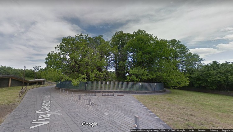 Vetusto esemplare, potato a ceduo, lungo il sentiero (già incontrato) per la Cascina Margherita. Ce n’è un filare intero.Castagno monumentale di Cerva, Sila Piccola. Gli Ent esistono!Castagno dei Cento Cavalli, Sant’Alfio (CT). (Foto: Omino Street View; una comoda visita virtuale)Kew Garden, Londra. Una passerella fra i castagni. Sospesi ad una ventina di metri dal suolo:che dà per gli occhi una dolcezza al core, che intender non la può chi non la prova.