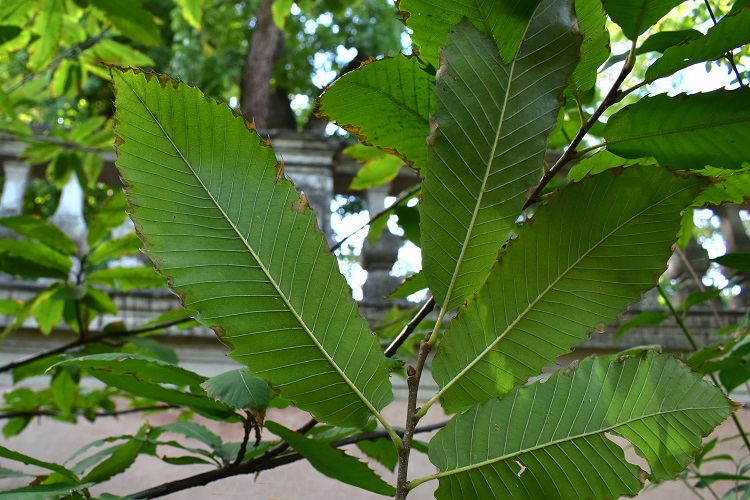 Il castagno è un albero grande, forte e longevo. Bello nel portamento: chioma ampia, rami svelti che si espandono quasi orizzontalmente, cima che si chiude a cupola. Ha segnato da sempre il paesaggio europeo, originariamente a sud e poi fino alle Isole Britanniche, e il regime alimentare nelle zone collinari e premontane. In città, che io sappia, esiste un unico esemplare in Orto e così giovane da non fare ancora frutti. Ma in compenso i Colli ne sono pieni.