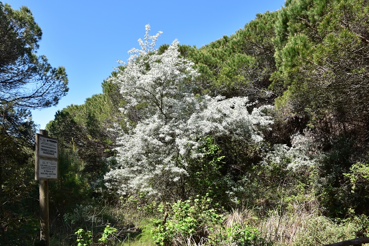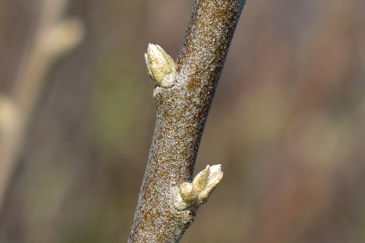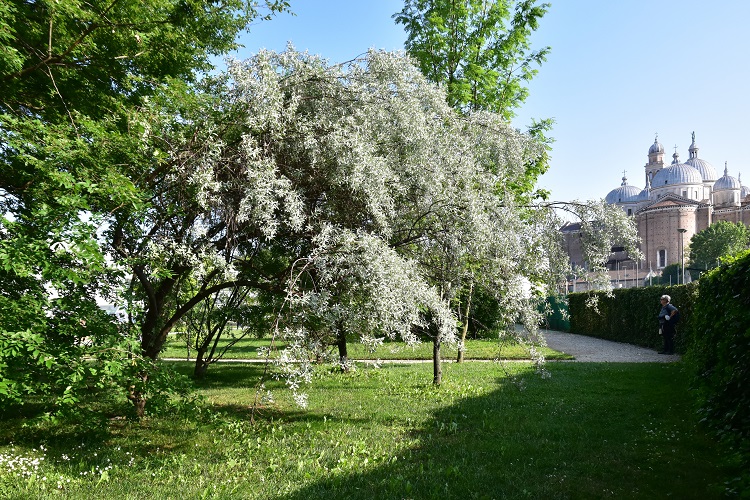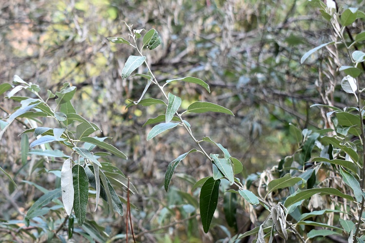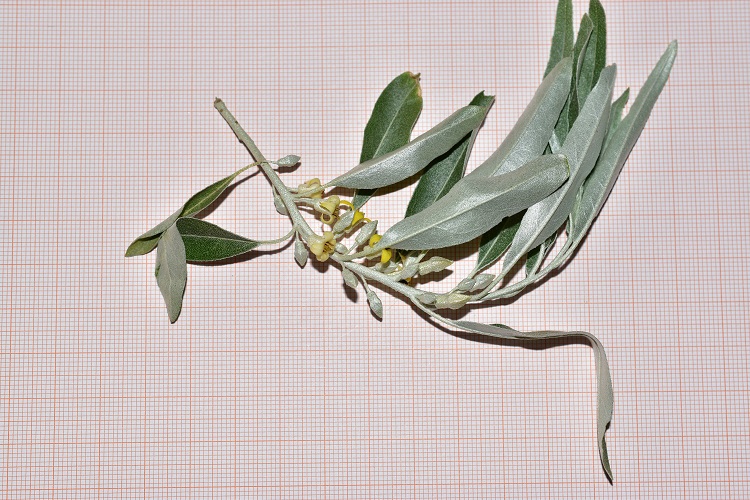 Bellissimo albero, o alberello, dai riflessi argentati: foglie, gemme, rametti, perfino fiori e frutti immaturi, tutto contribuisce a donargli questo affascinante aspetto. La specie è rarissima a Padova, che io sappia, un solo esemplare in Orto nell’area delle nuove serre. Non ha etichetta e così se volete andare a trovarlo portatevi dietro un manuale.