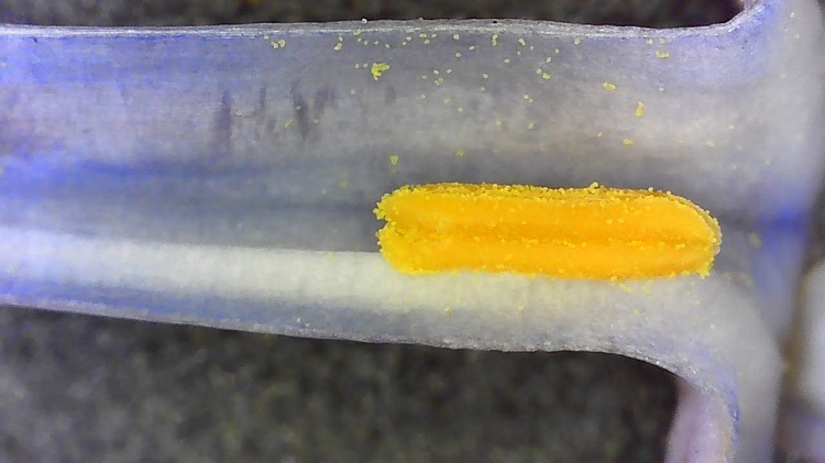 Il momento dell’anno più indicato per l’identificazione della pianta è aprile, il periodo della fioritura. Difficile restare indifferenti di fronte a tale sfoggio di colori e di profumi. Esemplare all’Orto Botanico in aprile.Questo esemplare al Parco d’Europa sembra essere tutto fiori!Foglie opposte. Lamina larga con forma slanciata, margine intero, apice appuntito e base cuoriforme. Il picciolo è corto e ha una scanalatura che continua nella parte basale della nervatura centrale.Il nome del genere rivela una caratteristica dei rami: il fatto di avere un midollo chiaro che col tempo lascia un canale vuoto, tanto da far assumere ai rami vecchi le sembianze di cannucce (syrinx).Infiorescenza piramidale con numerosi fiori profumatissimi. La fioritura avviene ad aprile. Ogni fiore ha una corolla tubolare formata da quattro petali fusi insieme che sulla sommità si aprono a stella.I petali sembrano minuscole sculture di cera. La loro simmetria tradisce l’appartenenza alla famiglia delle Oleaceae.Qui è evidente la forma tridimensionale dei petali, alcuni formano un uncino come le punte di certe pantofole orientali. I colori possono variare dal viola, all’azzurro ceruleo e al rosa antico, a seconda delle cultivar.Il pistillo è nascosto dalle gialle antere in attesa di essere fecondato, dopodiché inizierà la modificazione dell’ovario.All’interno del fiore: i due stami sono privi di filamento e così le antere sono direttamente attaccate alla corolla. Ecco rivelato il pistillo, con il grosso stigma in evidenza.A questi ingrandimenti sono visibili i singoli grani di polline.Il frutto è una capsula deiscente formata da due carpelli. Qui, i frutti ad agosto.Frutto in via di maturazione, ancora chiuso,……e frutto aperto formato da due carpelli.All’interno, ogni carpello ha una parete centrale che lo suddivide in due vuoti, ognuno dei quali contiene un piccolo seme piatto, che ricorda un po’ nella forma il seme alato di certi pini. Dunque, un totale di 4 semi per frutto.