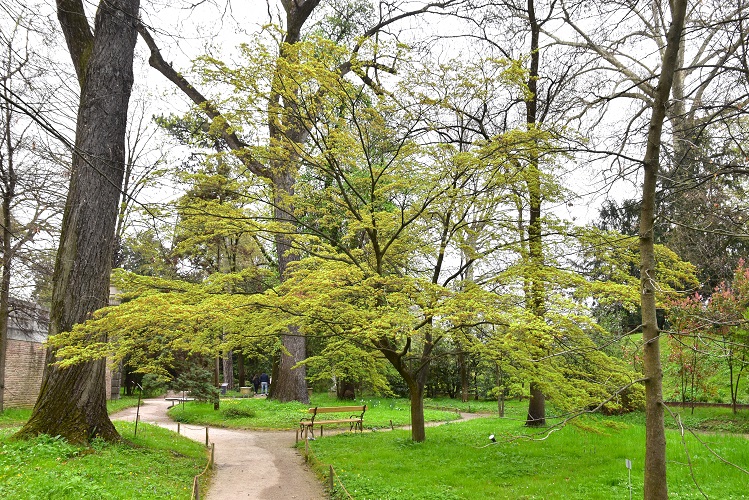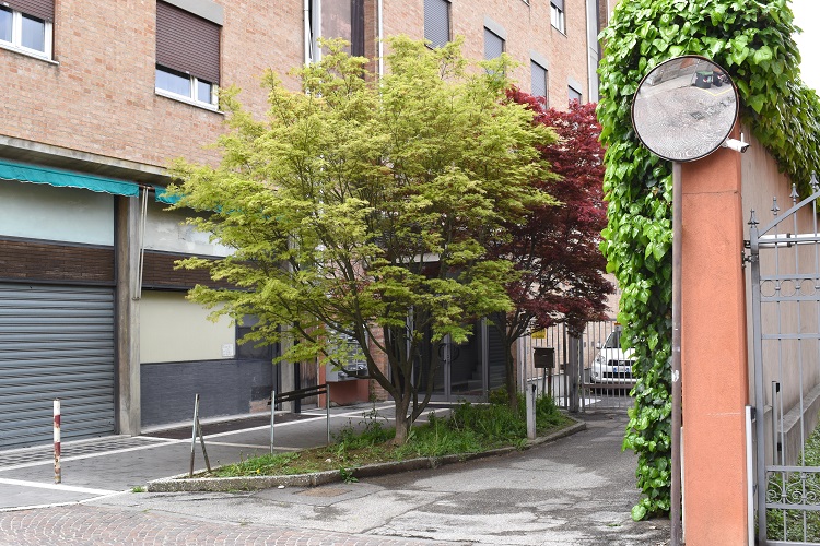 Un notevole esemplare in Via Pio X. Si distinguono bene i rami ad angolo acuto.Bellissimo palmatum in Orto al risveglio vegetativo. Tronco sempre breve.Da diversa angolazione. Lui vive nell’arboreto assieme a piante enormi, ma fa ugualmente bella figura.Giovane esemplare in una aiuola privata in Via Gabelli. Dietro, la cultivar Acer palmatum Atropurpureum, spesso i giardinieri li accoppiano.Corso Vittorio Emanuele II, all’incrocio con Via A. Mario. Le sfumature violacee sono dovute ai piccoli fiori (dalla rosse perule) appena emersi. Aprile.In autunno si infiamma di molte gradazioni di rosso e viola. Giardino del Settore Servizi Sociali del Comune, all’incrocio fra Via Giotto e Via del Carmine.Un significativo esempio di quest’arte combinatoria si può gustare nella aiuole all’entrata del Centro di Calcolo dell’Università in Via del Padovanino. Il palmatum è l’arbusto verde chiaro sulla destra. Foglia piccola. Profondamente lobata con nervature principali, le sole evidenti, che si dipartono dal lungo picciolo.Da cinque a nove lobi lunghi e stretti grandemente assottigliati al vertice. Nervature più evidenti sulla pagina inferiore. Bordo doppiamente dentatoIl colore delle foglie per questa specie è grandemente variabile: verde brillante in primavera e estate, diventa rosso o violaceo, a seconda dell’esemplare, in autunno. Un po’ a imitazione del liquidanbar, col quale condivide anche la forma delle foglie, ma non le dimensioni. Al risveglio vegetativo il verde è così tenero da sembrare quasi giallo e ciò crea grande contrasto colle rossissime perule. Insomma, questa pianta riempie dei suoi colori il giardino, settimana dopo settimana.I piccoli fiori sono disposti in infiorescenze a corimboCalice rosso e corolla che lentamente diventa gialla o bianchiccia La pianta è monoica con fiori bisessuali o solo maschiliMaturazione asincrona dell’apparato maschile e femminile; un vecchio trucco volto ad evitare l’autofecondazioneFiore privato di sepali, petali e stami che mostra pudicamente l’acerbo pistillo con ovario già munito di alette, pronto a trasformarsi nelle samare che verrannoFiore maschile. Si distingue, al centro del ricettacolo, un moncone di pistilloFessurazioni nelle sacche polliniche lasciano trapelare il giallissimo polline.I frutti sono piccole e precoci samare dalle ali rosse orientate ad angolo fortemente ottusoMaturano alla fine dell’estate e permangono a lungo sulla pianta, aspettando i venti del tardo inverno per esibirsi nel classico volo elicoidale.La corteccia all’inizio verde e liscia si ricopre presto di lenticelle in senso sia verticale che orizzontaleColl’avanzare dell’età si screpola leggermente e tende al grigio con un vaghi riflessi verdastri.