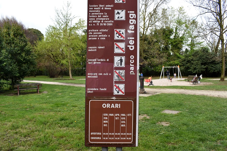 Il Parco è immediatamente a sud del Ponte di Voltabarozzo fra Via Vecchia e Via Piovese e prende il nome da tre splendidi faggi a foglia di felce (‘1’ nella mappa) che vivono nella zona centrale. Uno di essi è censito come monumentale e risale, almeno, all’insediarsi degli ultimi proprietari (Sgaravatti) negli anni venti del secolo scorso.