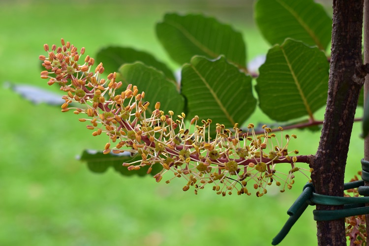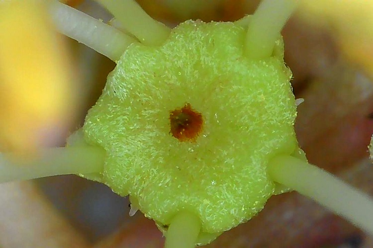 Orto Botanico di Padova, serre nuove. Altro esemplare in Orto, vive addossato al muro di cinta sul lato nordest, vicino alla Palma di Goethe.Malaga, Jardín Botánico Histórico – La Concepción. Un esemplare vetusto e imponente dalla chioma ampia e frastagliata. Il tronco segnato dal tempo, incute rispetto e soggezione.La corteccia si mantiene liscia per lungo tempo, ma alla fine si screpola in piccole scaglie perlopiù rettangolari.Bene se ne vede l’evoluzione nella foto. Il colore è bruno chiaro, dapprima tendente al rossiccio, poi al grigio.I rametti sono ricchi di lenticelle e colorati d’amaranto, tinta che la corteccia conserva ancora negli esemplari maturi.Foglia composta da due serie di foglioline quasi circolari, a bordo intero, dal piccioletto cortissimo, paripennate. Picciolo e rachide robusti e dal colore amaranto.Foglioline coriacee, spesse, verdissime nella pagina superiore, molto più chiare in quella inferiore. Venature evidenti sopra e sotto. Le nuove foglioline in maggio al risveglio vegetativo. Varie tonalità di fucsia; il muro di cinta dell’Orto, sullo sfondo, partecipa della saga cromatica.La fioritura è di difficile osservazione poiché il fiore minuscolo e nudo è disposto in piccoli racemi che spuntano dai posti più impensati. Amano farlo direttamente dalla corteccia dei rametti o addirittura del tronco. In questo il Nostro è simile all’Albero di Giuda, col quale condivide la famiglia (Fabaceae).Quanto al genere, ci sono piante con fiori sia unisessuali che ermafroditi. Anche se è molto più facile trovare alberi a sessi separati, cosa che ha facilitato i vivaisti nel selezionare massicciamente le femmine per i frutti grandemente richiesti.Singolo fioretto maschile. Simmetria esagonale con stami che si dipartono radialmente. Il calice è sormontato da una struttura curiosamente piatta (nettario). Gli steli escono in corrispondenza di impercettibili petali.Antere con due sacche polliniche coloratissimeSe il fiore maschile stupisce, ancora più singolare è il femminile. Da sinistra: calice a quattro-sei lobi, sei petali appena accennati, nettario appiattito a pianta esagonale, lungo e goffo stilo sormontato da uno stigma a cappella di fungo. In corrispondenza dei petali sbucano embrioni di antereOvario supero. Occupa lo stilo per intero con tutti gli ovuli allineati in fila per uno.Fiori fecondati o frutti in formazioneIl frutto è la famosissima carruba. Un grosso baccello, carnoso e profumatissimo; marrone a maturazione. Grande passione di tutti i bambini baby boomer che amavano divorarlo in festanti compagnie.Seme di carrubo, il famoso ‘carato’, una incredibile regolarità nel peso die singoli grani ne ha fatto unità di misura per preziosi.