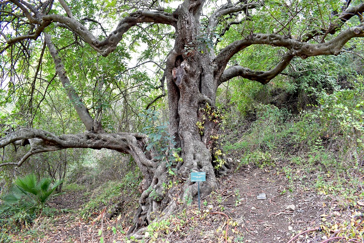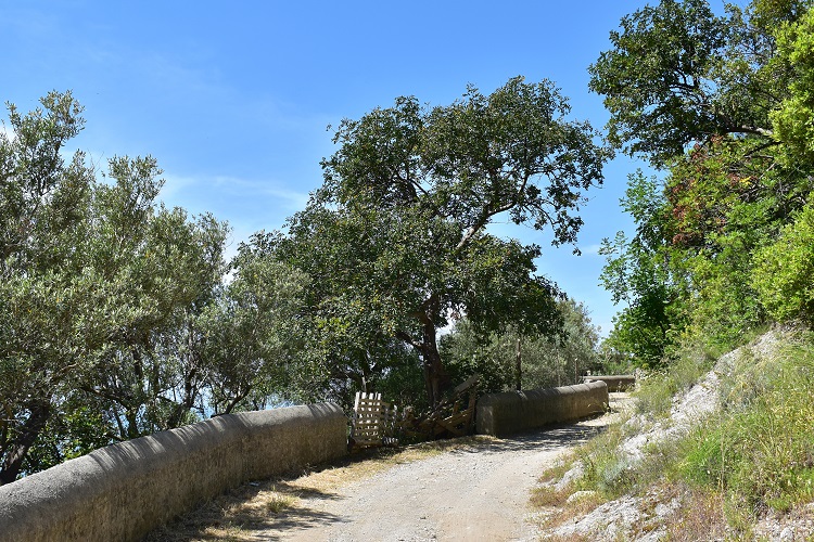 Maiori. Un notevole esemplare circondato da giovani ulivi. Si distingue, sullo sfondo, la parete rocciosa di Ravello.Sentiero per Erchie. Un ulivo a sinistra e un altro carrubo in alto; un bell’esempio di Oleo-ceratonion.Capri, un breve filare di carrubi cresciuto lungo un placido sentiero che lambisce i faraglioni.Sentiero dei Limoni