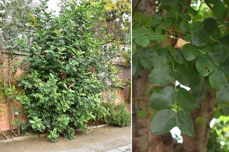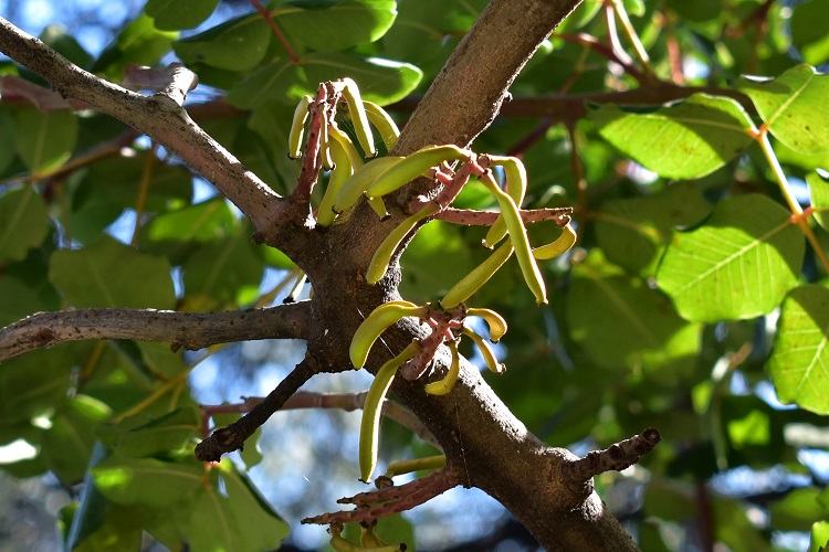 Albero mediterraneo per eccellenza assieme all’ulivo e alla macchia ne caratterizza il paesaggio e ne alimenta la cultura. Dal tronco breve si dipartono repentinamente grosse e robuste branche, che allargandosi danno alla chioma un andamento espanso. Le foglie pennate, con foglioline quasi perfettamente circolari, ne arricciano la capigliatura.