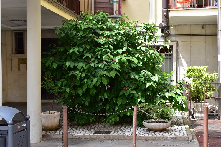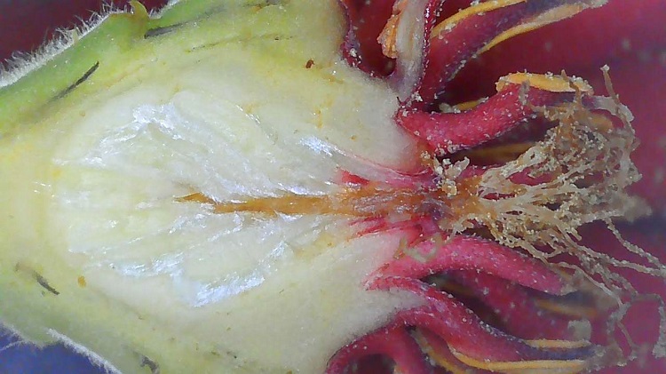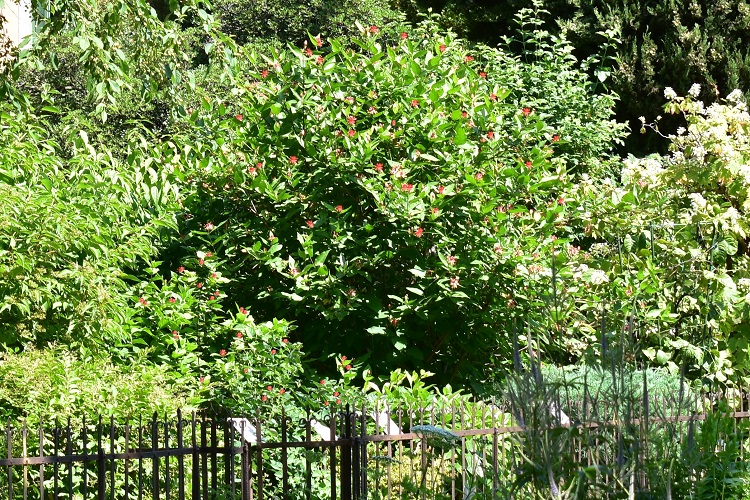 Fiore molto simile a quello del floridus; un po’ più grande, a detta dei manuali, ma è difficile valutare sul campo.Più facile è percepire le differenze nelle dimensioni essendo l’occidentalis decisamente più grande. Nella foto due esemplari, dell’Orto, che vivono uno accanto all’altro, a destra l’occidentalis.Il portamento è arbustivo con numerosi rami che si allarganoinnalzandosi. Del cugino si era detto che sembra un cespuglio, mentre le dimensioni del Nostro non ci consentono di prenderci una tale libertà. Nella foto uno splendido esemplare in una aiuola condominiale in Via del Padovanino. Esemplare di notevoli dimensioni al Giardino Santa RitaVia TiranaLa foglia dell’occidentalis, in basso nella foto, è apprezzabilmente più grande, e ha venature meno marcate e più rade, tanto che la lamina appare meno tormentata.Per entrambe le piante la pagina inferiore è più chiara. Ma le differenze nelle venature sono su questo lato più accentuate. Foglia con vertice acuto, lamina larga, ma meno di quella del cugino, base da acuta a piatta o……addirittura cordata.Anche per il Nostro, come avviene nel floridus (e nel calicanto d’inverno), la foglia è ruvida nel verso che va dal vertice alla base e liscia nel senso opposto. La causa sono minuscoli peli (in realtà dei veri e propri aghi) alloggiati su bordo e lamina. Di un bel giallo ambrato il foliageRitiro della clorofilla in vista della defogliazione.Via del PadovaninoFiore, vista zenitaleAppassisce a cominciare dalla punta dei tepali (petali della corolla e sepali del calice sono indifferenziati).Per curiosare fra gli organi riproduttivi è necessario rimuovere i tepali. Nella foto un recinto, fatto di curiose antere prive di filamenti, circonda, come in un Hortus conclusus,……diafani stigmi attorcigliati gli uni agli altriBrevi stili (saldati fra loro in un’unica colonna) penetrano nel ricettacolo e conducono a un complesso di ovari……ciascuno dei quali contiene ovuli in fila per uno. (tecnicamente è una pseudo capsula)Le minuscole antere……due sacche polliniche ricoperte di peli.Il frutto è una pseudo capsula contenente numerosi acheni marrone. Nella foto ancora in formazione.I frutti maturano a cominciare da settembre e restano sulla pianta ben oltre il risveglio vegetativo nel successivo aprile.Corteccia grigia, liscia e spruzzata di lenticelle.Un bell’esemplare ai Giardini dell’ArenaL’altro occidentalis dell’Orto, che vive presso il Ginkgo secolareEsemplare veramente notevole al Giardino Ninfa (LT).