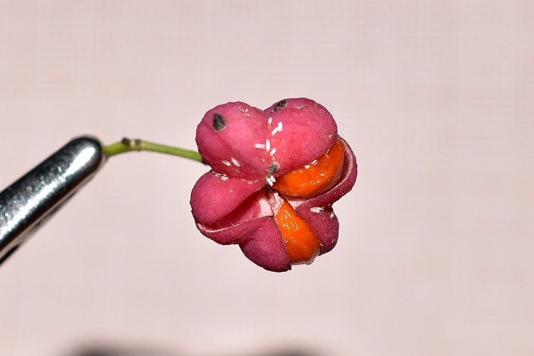 Chi ne ha visto il frutto una volta non lo dimentica più: una capsula a simmetria quadrangolare dal colore rosa shocking, generalmente pendula, ma se la si gira, si capisce quanto il nome volgare sia azzeccato.
