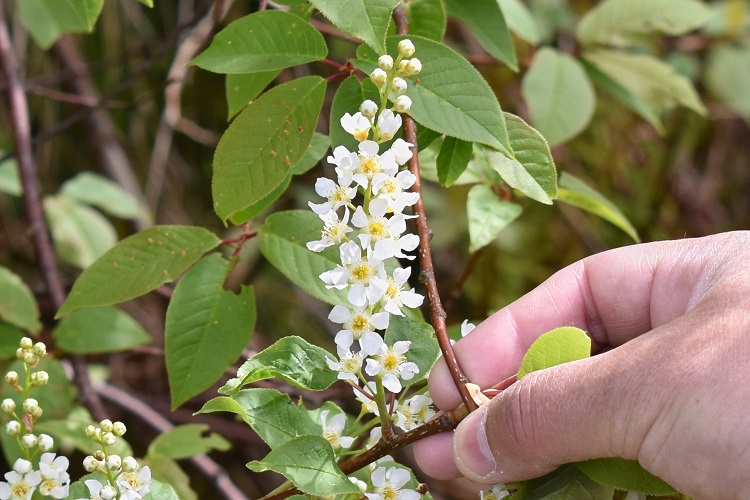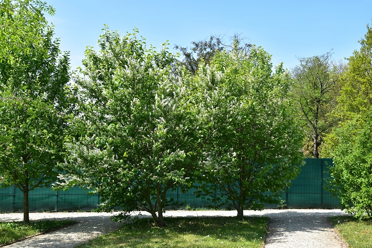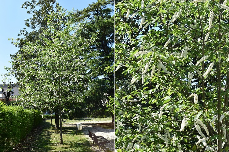 Piccolo albero o arbusto dalla spettacolare fioritura in lunghi grappoli di fioretti candidi e foglie color verde acqua. In città è raro, ma meriterebbe più attenzione da parte dei giardinieri sia per le sue origini, era presente nelle foreste planiziali del Veneto, sia per la sua bellezza.