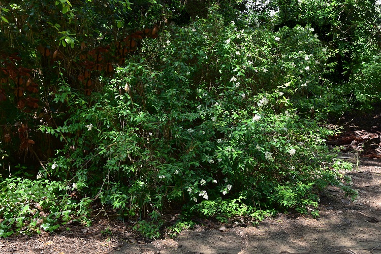 Isola di Sant’Elena, Venezia: Parco delle Rimembranze. Pini domestici frammisti a pini marittimi. Nei dipinti sono ritratti spesso animali, in questo particolare dal primo episodio si distinguono due conigli selvatici acquattati fra bassi arbusti dalle bianche infiorescenze erette.Due cervi che si abbeverano, ma uno di essi sembra distratto da qualcosa. (Particolare dal secondo episodio) Questo particolare, sempre dal secondo episodio, mostra un cervo che bruca un arbusto a foglia larga e dalla chioma alta e stretta. Ma è difficile individuarne la specie da così pochi elementi.Primo episodio. Una pecora al pascolo, che sembra indifferente alla ferocia dei cani, e dietro due conigli forse in fuga. Si noti il sangue sul gluteo della donna e come i cani abbiano gli artigli ben separati per meglio affondarli nelle carni della poveretta incorsa nella giustizia divina (ma si sa, Dio è maschio…)Nella novella si dice che la giovane era ‘tutta graffiata dalle frasche e da’ pruni‘. Ma nei dipinti non vi è traccia di abrasioni. I pruni erano di certo Prunus spinosa (il che ci ricorda qualcosa), difficile dire se l’arbusto alto e stretto già incontrato è tale, tuttavia pare improbabile poiché il prugnolo ha chioma che si allarga salendo.Il sottobosco, come succede nelle pinete, manca quasi completamente, se non per i bassi arbusti, di cui si è detto, e che erano in piena fioritura alla fine di aprile (‘quasi all’entrata di maggio’ recita la novella).Potrebbe trattarsi di ligustro comune, unica specie autoctona che in quel periodo esibisca infiorescenze a candelabro. Ligustrum vulgare fiorito in maggioInfiorescenza