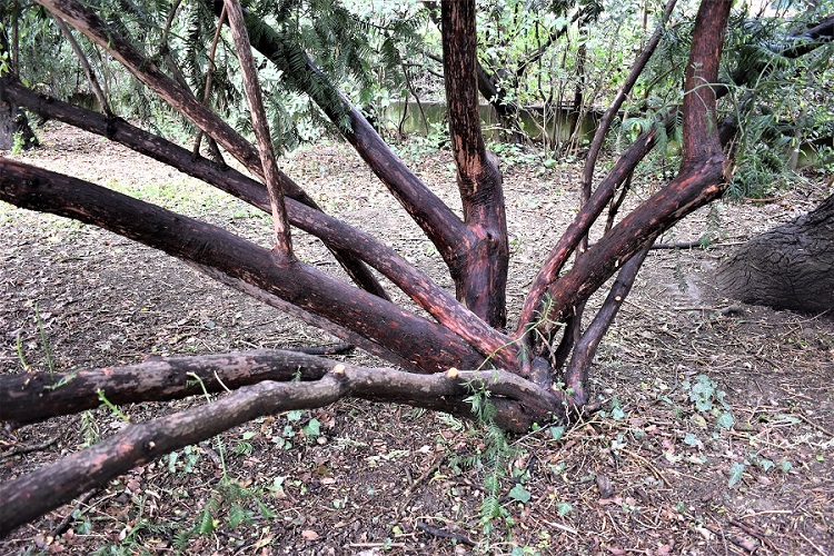 Nelle piante adulte la corteccia si sfilaccia in lunghe strisce sottili, in modo simile al Libocedro.I rami e i giovani alberelli hanno corteccia rossastra.