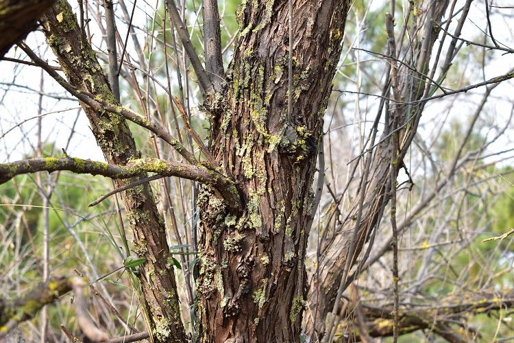 La corteccia si fessura longitudinalmente, non in modo profondo, ma tanto da permettere alle falde di distanziarsi fra loro e staccarsi alquanto dal tronco.Fuori dai viali cittadini vivono quella con le spine, e che spine!