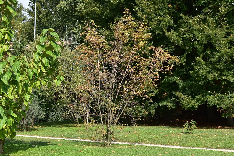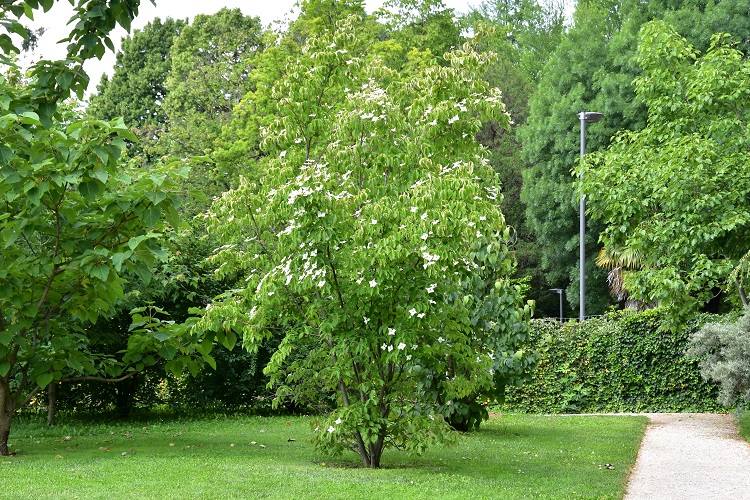 Alberello o arbusto presente in città solo in Orto (che io sappia), ma che si va affermando in Italia in sostituzione del cugino americano Cornus florida vittima di un parassita che lo uccide senza pietà. Indipendentemente da questa congiuntura, le sue attrattive sono comunque notevoli soprattutto fiori e frutti.