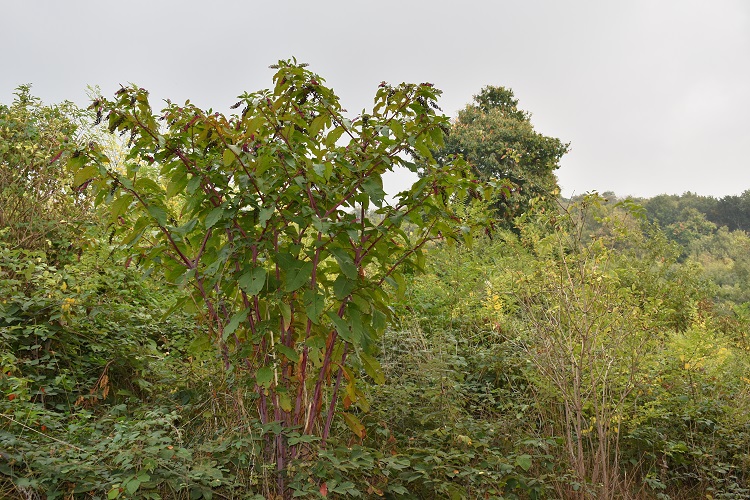 La pagina 441. Nella descrizione il solo riferimento alle foglie. Linneo la colloca fra le piante con dieci stami e dieci pistilli.Fenologia: tutte le cose interessanti per questa pianta succedono da Luglio in poi.Areale di origine (native range). La pianta si è diffusa in tutto il mondo e dai giardini è scappata. Ritenuta infestante è oggetto di monitoraggi severi (forse un po’ esagerati).