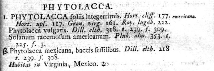 Phytolacca americana L. Nome imposto da Linneo nel celeberrimo Species Plantarum, Stoccolma, 1753.