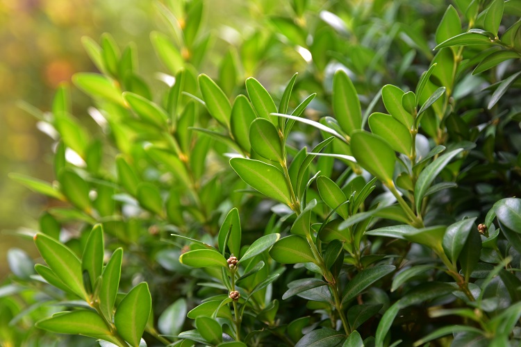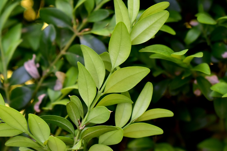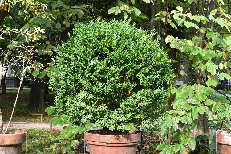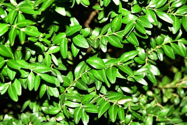 Arbusto sempreverde notissimo. Le foglie verdissime, lucide e coriacee; il folto fogliame; la grande duttilità alle potature ne fanno da sempre il preferito per bordure e opere topiarie di ogni sorta. La chioma, se lasciata in pace, è naturalmente sferica grazie a rametti, fitti di foglie, che si dipartono dritti in ogni direzione.