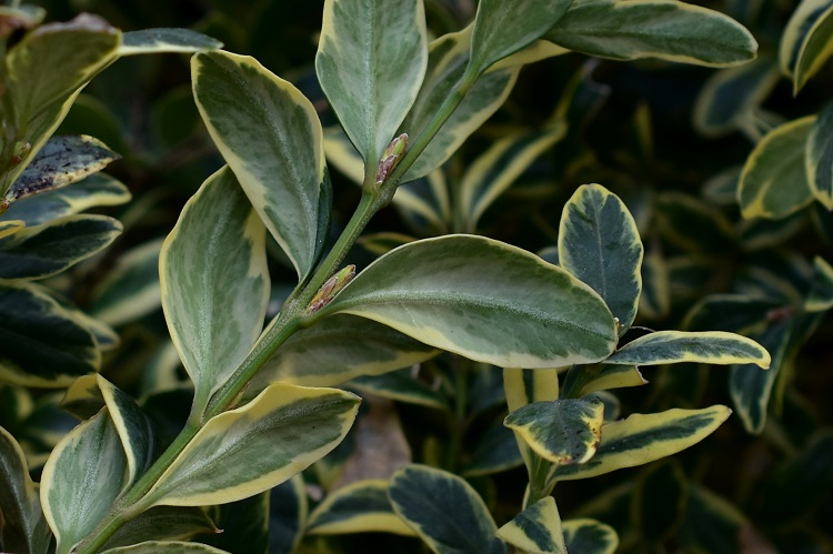 Molto attraente la cultivar Marginata dalle foglie orlate di giallo, dal forte contrasto col verde lucido originalePagina inferiore leggermente più opacaPortamento e chioma in tutto simili alla pianta madre.