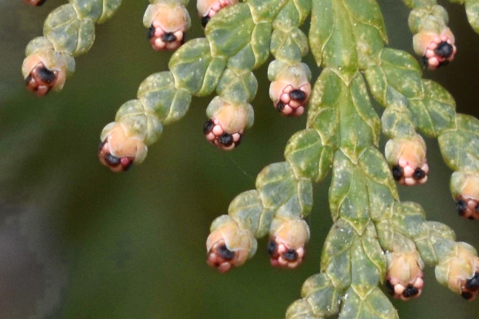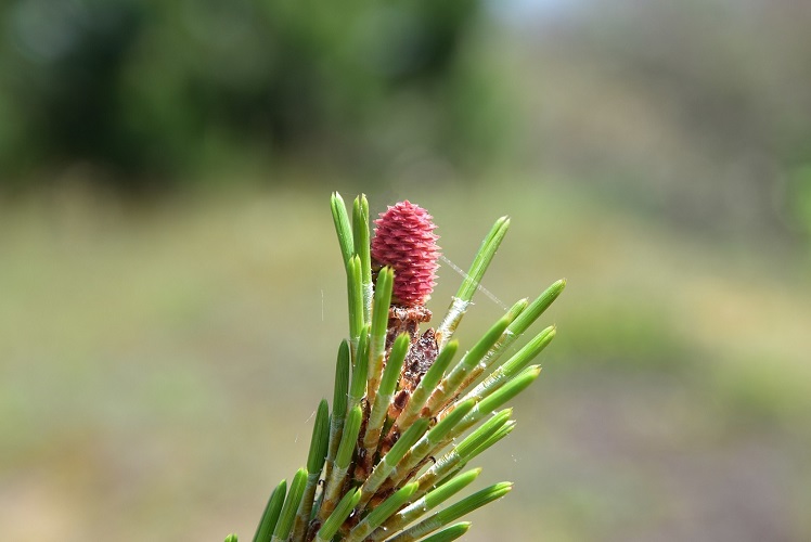 Il fiore femminile di questa specie è piccolissimo, cresce all’ascella dei rametti; privo di corolla, di lui si vedono soltanto gli stigmi cremisi sfilacciati in punta.