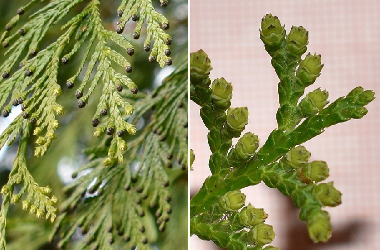 Pannocchie in cima ai rami; nella parte bassa porta i fiori maschili, mentre sopra (dove ha più propriamente l’aspetto di un grappolo) si trovano i fiori femminili. Il colore è molto variabile.