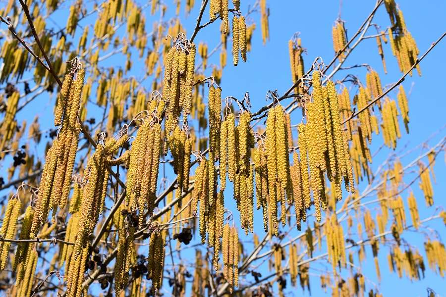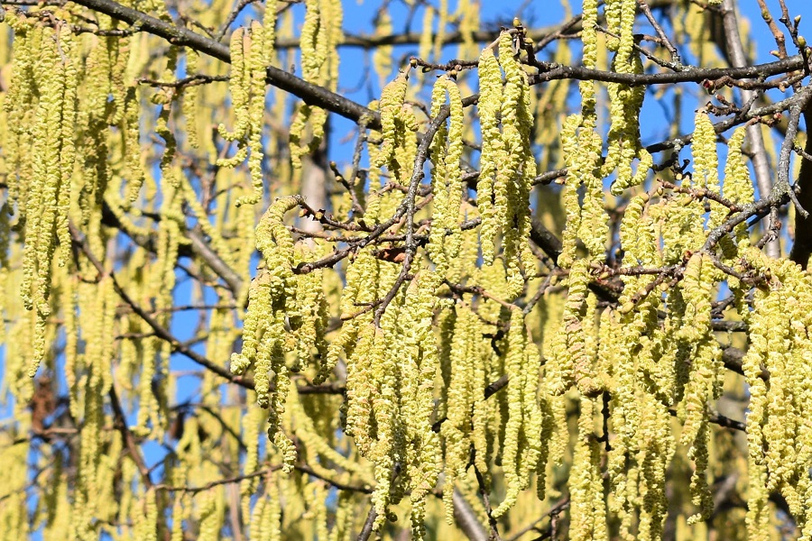 Fioretti in amenti gialli al mettere di tenere foglie; l’albero appare da lontano con i rami appena coperti da una peluria giallina. Albero dioico, la fioritura delle femmine è criptica.