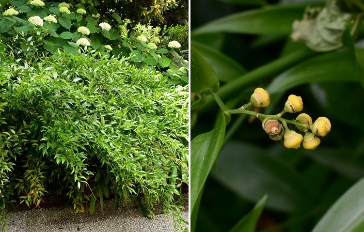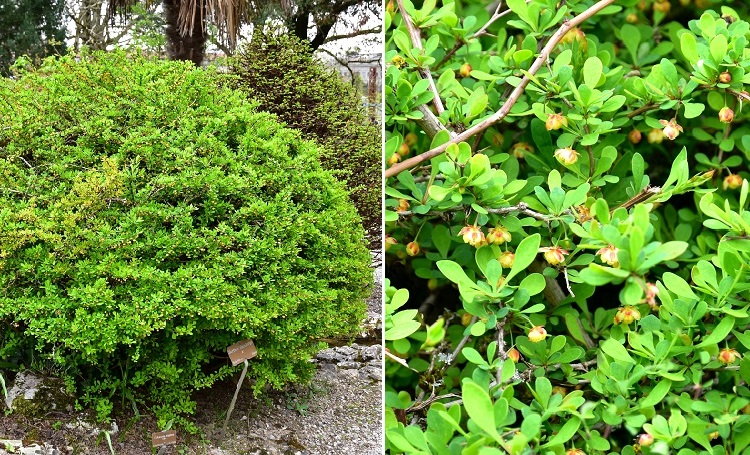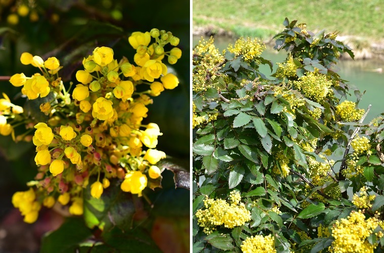 Piccole sferette gialle (all’apparenza capolini ma in realtà infiorescenza a ombrella) ricoprono quasi interamente i rami. Da lontano la pianta appare come una macchia gialla solcata da strisce nerastre.