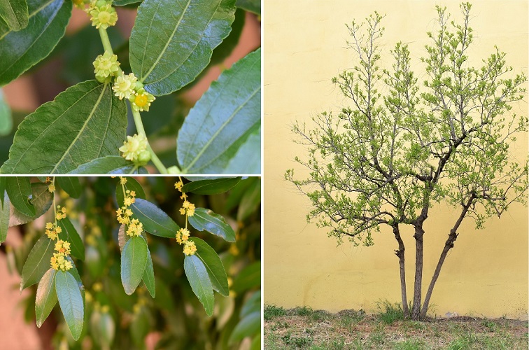 Albero dioico. Gruppi di fiori giallissimi, per le vistose antere, coprono i rami facendo cambiare colore al maschio. Molto meno evidente il fenomeno nelle femmine.