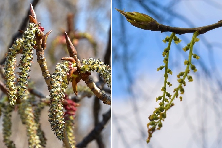 Gli amenti maschili appaiono come piumini pendenti di colore giallo o rosso a seconda del colore delle antere. Albero dioico. La fioritura delle femmine è dimessa e spesso gli amenti si confondono fra i frutti secchi.