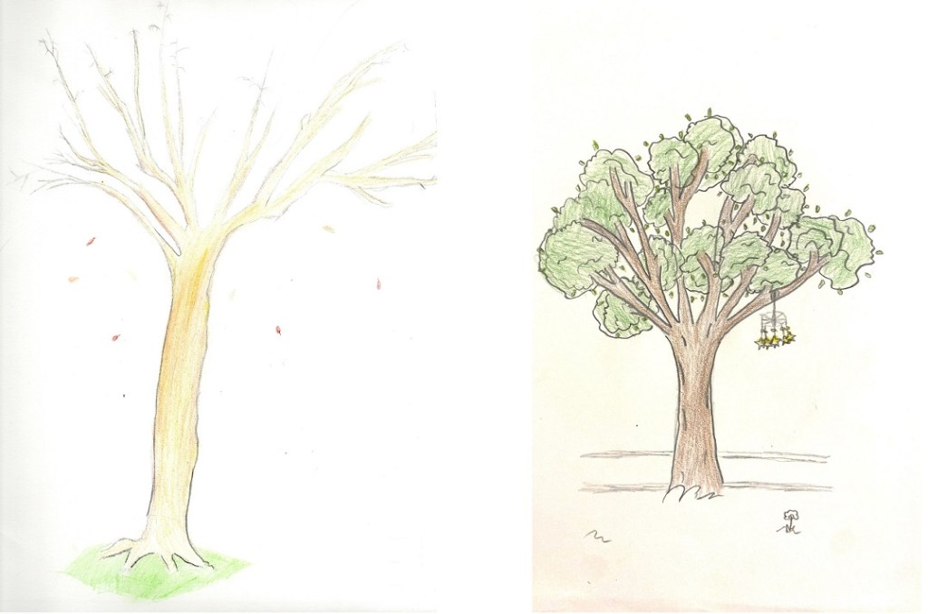 Il primo passo è dunque la scelta e il disegno dell’albero. Quest’anno agli studenti è stato chiesto di disegnare il proprio albero nella stagione tardo autunnale, per mettere in risalto la struttura del tronco e delle diramazioni del fusto, utilizzando alcuni accorgimenti (un ringraziamento al docente Professore R. Verzaro di Arte).