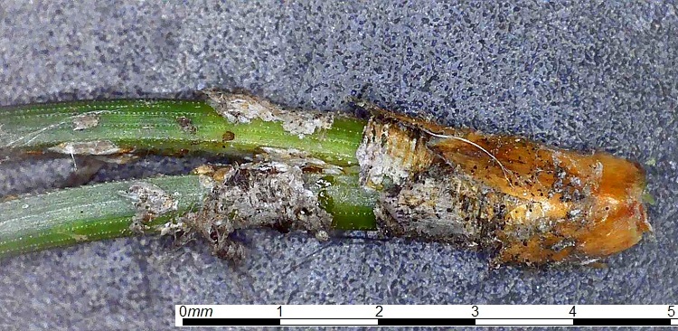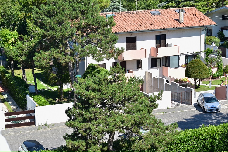 Da giovane la chioma è conica, poi diventa cilindrica o irregolare, spesso però perde i rami più bassi a allora sembra quasi espansa. I palchi sono a verticillo e orizzontali, ma con le punte all’insù. (Lido di Venezia, località Ca’ Bianca, lato Laguna)Spesso il tronco appare diviso in due o più fusti. Pineta di San Nicolò, Lido di Venezia.Aghi a fascetti di due, mediamente lunghi, di colore verde scuro, rigidi ma non sempre pungenti. Una decina di file di stomi su entrambe le facce, la superiore convessa e l’inferiore piatta Bordo seghettato. Lo si sente, se si accarezza l’ago nel verso punta-base.Sezione semi ellittica. I segmenti bianchi in direzione radiale sono canali stomatici, i cerchietti neri canali resiniferi.Gli aghi in punta seguono la direzione del rametto, mentre i più arretrati si incurvano in avanti e quelli ancora più in dietro si dipartono perpendicolarmente. Lunghezza intermedia tra il silvestre e il domestico; spesso incurvati ma mai ritorti. La guaina alla base annerisce con l’età e ciò aiuta l’identificazione. Un ago ha vita media di circa un lustro.I due aghi sono attaccati ad un corto rametto (brachiblasto) lungo qualche millimetro. Nella foto si distingue bene la guaina protettiva nera; invecchiando si logora, ma dura tutta la vita degli aghi.Ritornando alla foto del rametto possiamo osservare che se al colore scuro degli aghi aggiungiamo il nero delle guaine protettive, allora il rametto ha verso il centro colore particolarmente tetro. Per molti Cacciatori di Alberi è questo un carattere dirimente. Infiorescenza maschile alla base dei nuovi rametti composta da un mazzolino di coni dapprima rossicci e poi decisamente gialli.I coni portano, attorno al loro asse, minuscole squame disposte a spirale.Fine aprile. Esaurito il loro compito diventano aranciati, mentre il resto della gemma si allunga e lascia spuntare i nuovi aghi: risveglio vegetativo.Allargando il campo visivo.Il fiore femminile ha già la forma della pigna. Le squame che portano gli ovuli sono dapprima rosse, poi trascolorano fino a diventare verdi entro il primo anno. Lenta trasformazione del cono. La fecondazione non è immediata, il polline è trattenuto alquanto mentre il cono cresce. Foto in luglio.Coni di un anno. Pigna (strobilo) non molto grande (si colloca a mezza via fra il sylvestris e il pinaster), ha forma ellissoidale con vertice appuntito e base più piatta.Gli strobili maturano dopo due anni e poi cadono dopo aver liberato i semi alati. Quando le squame si aprono lasciano vedere la loro parte superiore (unghia) che ha un caratteristico colore nero, particolare che aiuta il riconoscimento della specie.Lo scudo (parte scoperta della squama) è munito di umbone a forma romboidale con al centro un aculeo appuntito (mucrone). La base della pigna è quasi piatta e il peduncolo inesistente Nella foto si distinguono bene questi caratteriUna attività affascinante è provare a seguire le linee ideali (spirali) che uniscono le squame, conviene concentrarsi sugli umboni. Risulta sempre che il numero delle spirali coinvolte è pari a qualcuno dei numeri della successione di Fibonacci (perennemente presente in Natura); sia se si percorrono le spirali in verso orario che antiorario. Vi rimando a un sito di didattica della matematica, visitatelo non morde…Seme alato, un paio di centimetri in tutto.Gemma tozza, tondeggiante, appuntita e resinosa, caratteri che aiutano l’identificazione. Più difficile distinguerla da quelle degli altri pini quando comincia a squamarsi alla ripresa vegetativa.La corteccia degli individui maturi è grigia, a grandi placche allungate longitudinalmente e delimitate da profonde fessure nere. Le placche sono interamente ricoperte dalle cicatrici lasciate da piccole squame caduche. Da giovane ha colore marrone rossastro un po’ come tutti i pini, ma cominciano presto a comparire le caratteristiche cicatrici. E ciò aiuta l’identificazione. Una coppia di giganti dell’Orto, rispettivamente Pinus nigra e Zelkova carpinifoliaVia Paolo Sarpi, in questo spazio fra le mura e la strada vivono molti alberi di una certa età fra i quali alcuni pini austriaci.Pacro Milcovich, esemplari ramificati alla base. Li abbiamo già incontrati in occasione di un post dedicato ad una affascinante scultura arborea. Prospettiva insolita su esemplari in giardini privati al Lido.Notevole individuo al Parco Bolasco, Castelfranco.Splendido esemplare al Parco di Villa Pisani, Stra.Azienda Forestale La Bronca, San Martino al Cimino. Interessante riforestazione a base di pino nero e altre specie.Una escursione piacevole e ricca di biodiversità.Sulla costa dalmata invece crescono spontanei occupando un po’ tutte le fasce, ma dividendo le più alte solo con Juniperus oxycedrus (nella foto è in basso, dietro la cima del Nostro). Monte Ossero, Isola di Lussino.