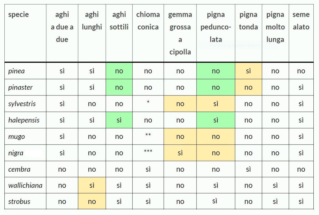 Della possibilità di distinguere i pini ne abbiamo già parlato in un post precedente, che tuttavia nasceva da una suggestione quasi estetica (il profilo dei rametti). È giunto il momento di affrontare la questione in modo più sistematico.