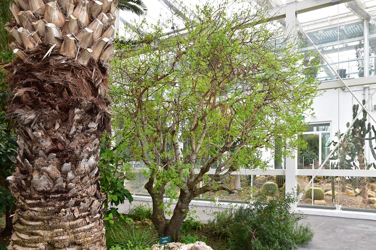 L’albero può raggiungere i cinque metri. Nella foto (esemplare lungo la Via Appia presso Fondi, Latina) si distingue bene la chioma piuttosto rada tipica della specie.I rami sottili salgono con inclinazioni incerte. Isola di Cherso (Arcipelago del Quarnero), le macchie rosse sono infruttescenze in settembre.In città, che io sappia, vivono i soli esemplari (quattro) dell’Orto. Nella foto il grande Terebinto (una femmina) che abita la Macchia mediterranea, presso l’Edificio Museale a nord.Da sinistra a destra: 1 Pistacia terebinthus, 2 Phillyrea latifolia, 3 Rhamnus alaternus, 4 Juniperus communis, 5 Viburnum tinus, 6 Arbutus unedo, 7 Myrtus communis, 8 Olea europaea, 9 Pistacia lentiscus.Nelle serre nuove abita un maschio di una certa età ma dalle dimensioni contenute.Foglie composte imparipennate. Inizialmente verde chiaro e quasi bronzee… Da due a quattro paia di foglioline a bordo intero e senza picciolo. Rachide non alato a differenza del cugino lentisco la cui foglia, ad una prima osservazione, molto somiglia a quella del Nostro.Foglioline da allungate ad arrotondatePicciolo appiattito, scanalato e inizialmente arrossato. Rametti lenticellati e, da giovani, verdi rossastri.Nella foto foglia in ottobre. Ha perso il colore brillante e mostra con maggiore evidenza le venature chiare delle foglioline.Gemme con perule rosse a punta nera, dai colori un po’ sbiaditiRametti marroncino con numerosissime lenticelle.Infiorescenza a pannocchia, i minuscoli fiori la rendono alquanto scarna. Nella foto infiorescenza femminile. I fiori nudi (senza petali) hanno rossissimi stigmi.Tre stili saldati alla base confluiscono in un ovario sferico circondato da minuscoli tepali (non tutti della stessa lunghezza). In basso la brattea protettiva.Pochi giorni dopo. Con i sepali asportati bene si distinguono l’ovario sferico, sempre più arrossato, e i tre stili verdi. Infiorescenza maschile dai fioretti nudi con filamenti cortissimi e antere rosse e verdiFiorisce poco prima di mettere la foglie Qualche tempo dopo a completa maturazione si distingue bene la forma a pannocchia dell’infiorescenza Cinque antere. Nella foto ormai aperte e grondanti polline. La foto di destra mostra la grande brattea protettiva.I frutti sono piccole drupe disposte in grandi strutture aperte che riproducono la forma delle infiorescenze.Frutti in formazione in maggio. Le drupe sono sempre molto indecise ad assumere la colorazione rossa che portano per tutta l’estate. Poi a maturazione diventano blu violacee. Foto in ottobre.Corteccia prevalentemente grigia. Piccole placche irregolari sollevate ai bordi e separate fra loro da strette fessurazioni.Giovane pianta cartellinomunitaGiovane Terebinto con i colori delle foglie appena formate. Passo Quercia del Monaco, Lenola, Latina.Aprile. Ancora la Terebinta presso l’Edificio Museale.Sentiero dei Limoni (Maiori, SA), una immagine che è quasi un compendio della Macchia mediterranea. A destra un Lentisco caparbiamente aggrappato alla parete rocciosa (calcare dolomitico), a sinistra Alaterno e al centro vicino alla ringhiera un giovane Terebinto. La ripidezza della scalinata non è un effetto prospettico…Un terebinto di incredibili dimensioni vive nel Cimitero di Monterosso (Cinque Terre, La Spezia). Cascata di Tivoli, Villa Gregoriana. Un Grande terebintus cresciuto sulla roccia immediatamente soprastante il salto.