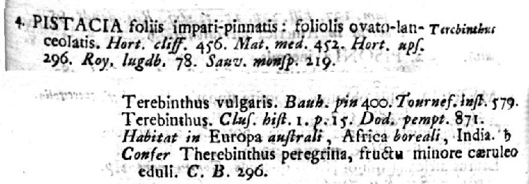 Pistacia terebinthus L. Nome imposto da Linneo nella prima edizione del celeberrimo Species Plantarum, 1753.