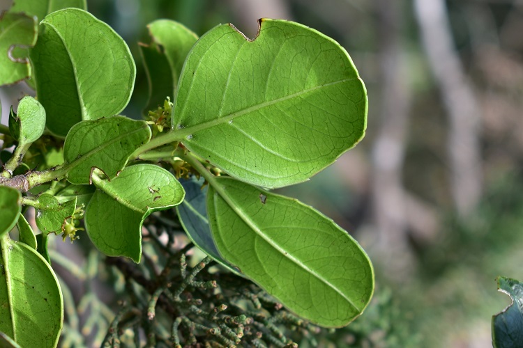 Rhamnus alaternus L. Per il nome Linneo si ispirò, a detta dei manuali, al latino ‘alternus’ in riferimento alle foglie alterne, mentre il genere lo prese dal greco ‘ramnos’=bastoncino per i suoi rami flessibili. Glielo assegnò nella prima edizione del celeberrimo Species Plantarum, 1753.