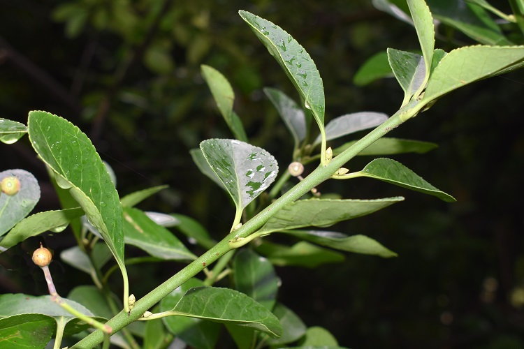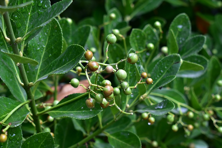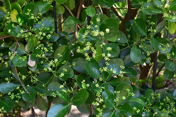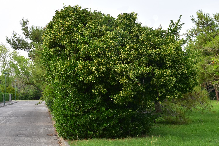 Arbusto alto fino a tre metri ma che può vivere pure in piccole fioriere da esterno; si trova anche come alberello. La chioma è folta, ricca di foglie verde brillante e fittamente ravvicinate le une alle altre.