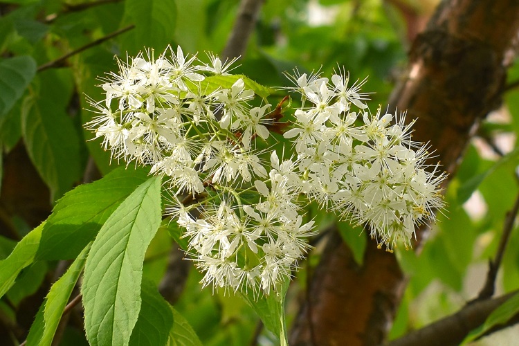 Il fiore ricorda quello del ciliegio dolce, ma una o due piccole incisioni all’apice dei petali aiutano l’identificazione. Alcune cultivar hanno corolla doppia o semidoppia.La fioritura è precoce, comincia già a metà febbraio; tutti gli altri ciliegi iniziano da metà marzo in poi, gli ultimi in aprile.Denti acuminati. Meno del serrulata, ma molto di più di tutti gli altri ciliegi.L’unico ad avere venature terziarie pressoché invisibili a occhio nudo e di difficile classificazione; circostanza che a ben pensarci è dirimente fra i ciliegi.